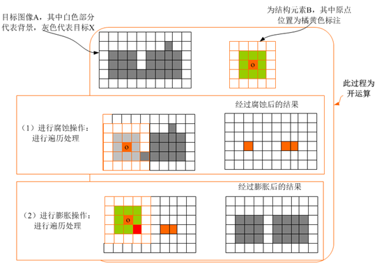 开运算是图像腐蚀和膨胀操作的结合,首先对图像腐蚀,消除图像中的噪声和较小的连通域,之后通过膨胀运算弥补